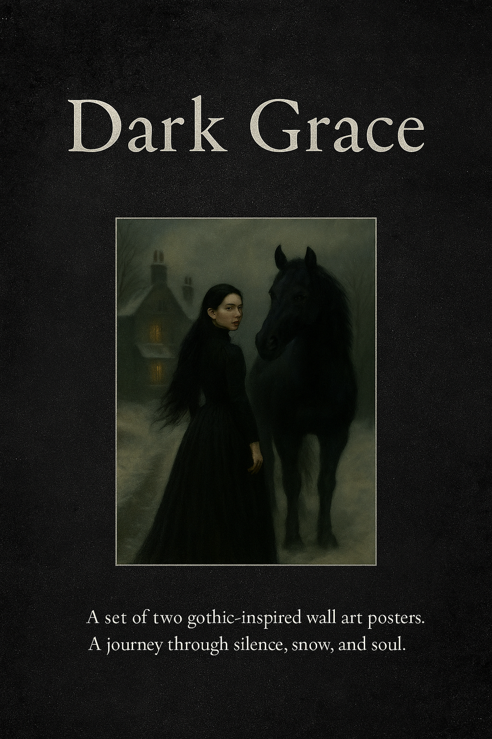 Step into a world of quiet elegance and gothic winter mystery, where snow meets silence and darkness reveals beauty.